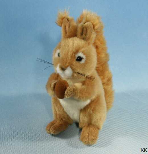 Plüschtier Eichhörnchen in stehender Position und einer Nuss in der Hand.